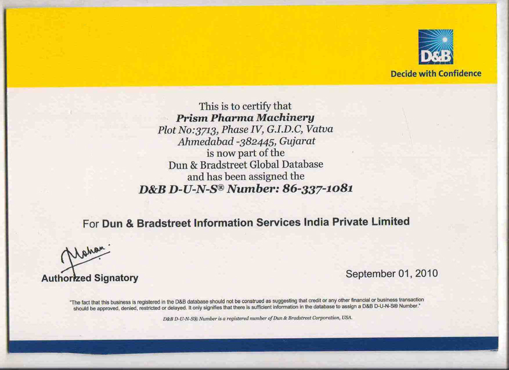 DUN & BRADSTREET Certified Company D-U-N-S No. 86-337-1081